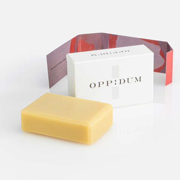 2. Humidifiez votre savon-soin OPPIDUM et passez-le directement sur la peau. Privilégiez les zones principales à partir desquelles vous ferez mousser votre savon : bras, buste, épaules, bas du dos, cuisses, mollets.